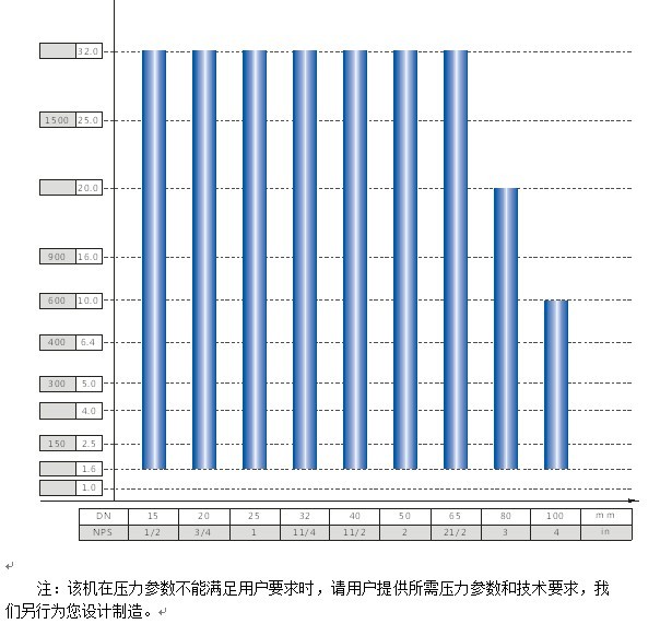 3.3 JWZQ-300型 (潛水式)閥門公稱通徑與公稱壓力試驗(yàn)范圍