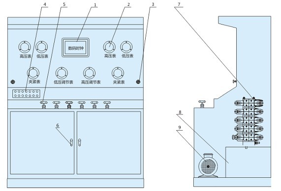 1. 數(shù)碼時(shí)鐘 2. 壓力表 3. 壓力表開關(guān)