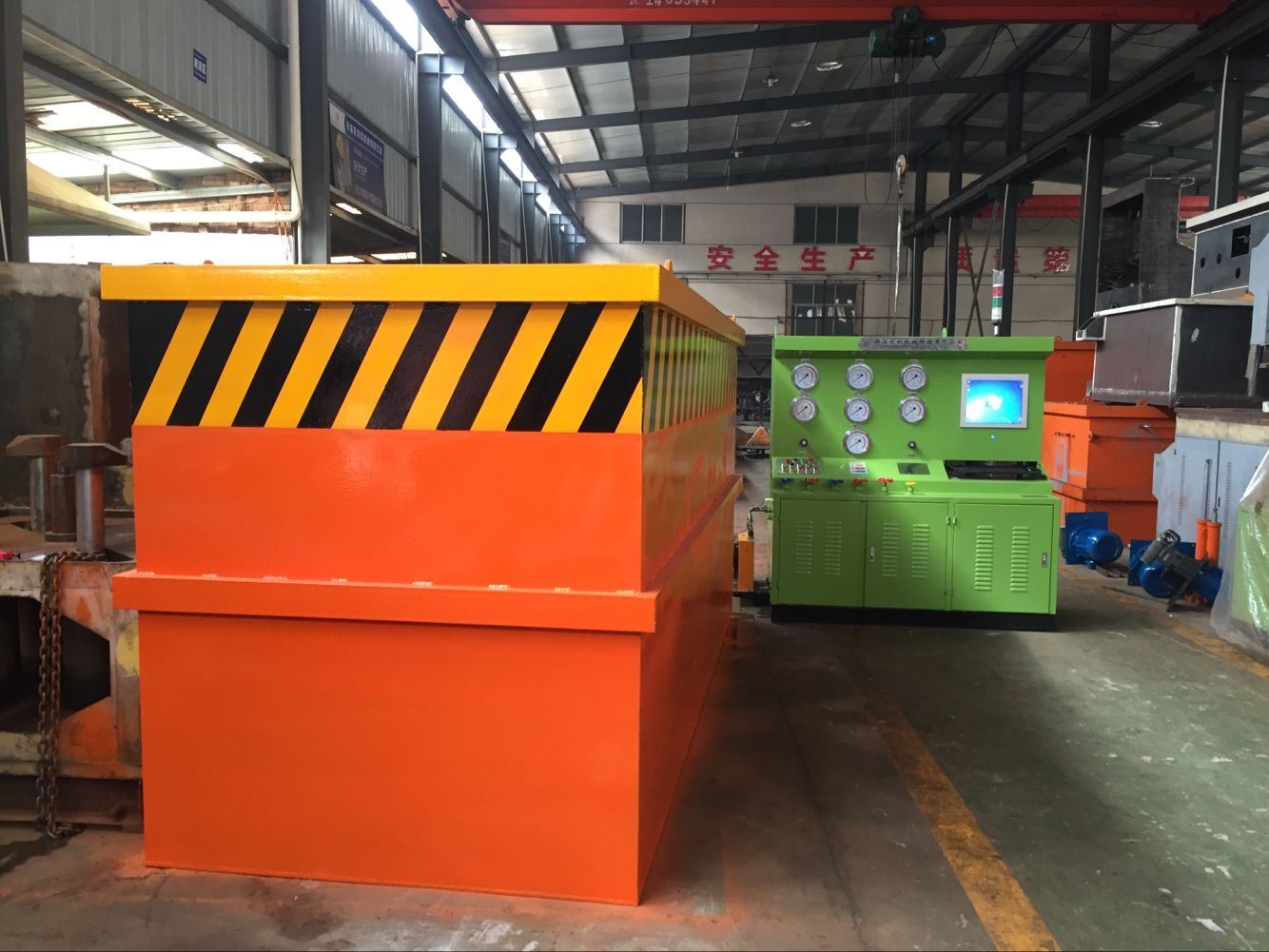 JWZQ型閥門液壓試壓機(jī)是我公司在積累多年生產(chǎn)閥門檢測設(shè)備技術(shù)的基礎(chǔ)上按照國家GB/T1 3927 — 92《通用閥門壓力試驗(yàn)》和ZBJl6006-90《閥門的試驗(yàn)與檢測》的標(biāo)準(zhǔn)規(guī)范要求,是公司自主研發(fā)的新一代沉水式液壓閥門試壓機(jī)并擁有發(fā)明技術(shù)專利知識產(chǎn)權(quán),專利號ZL2016 1 0260566.7本機(jī)最大特點(diǎn)是將被測試工件浸入水中,在測試過程中可方便目測測試工作是否有泄漏,