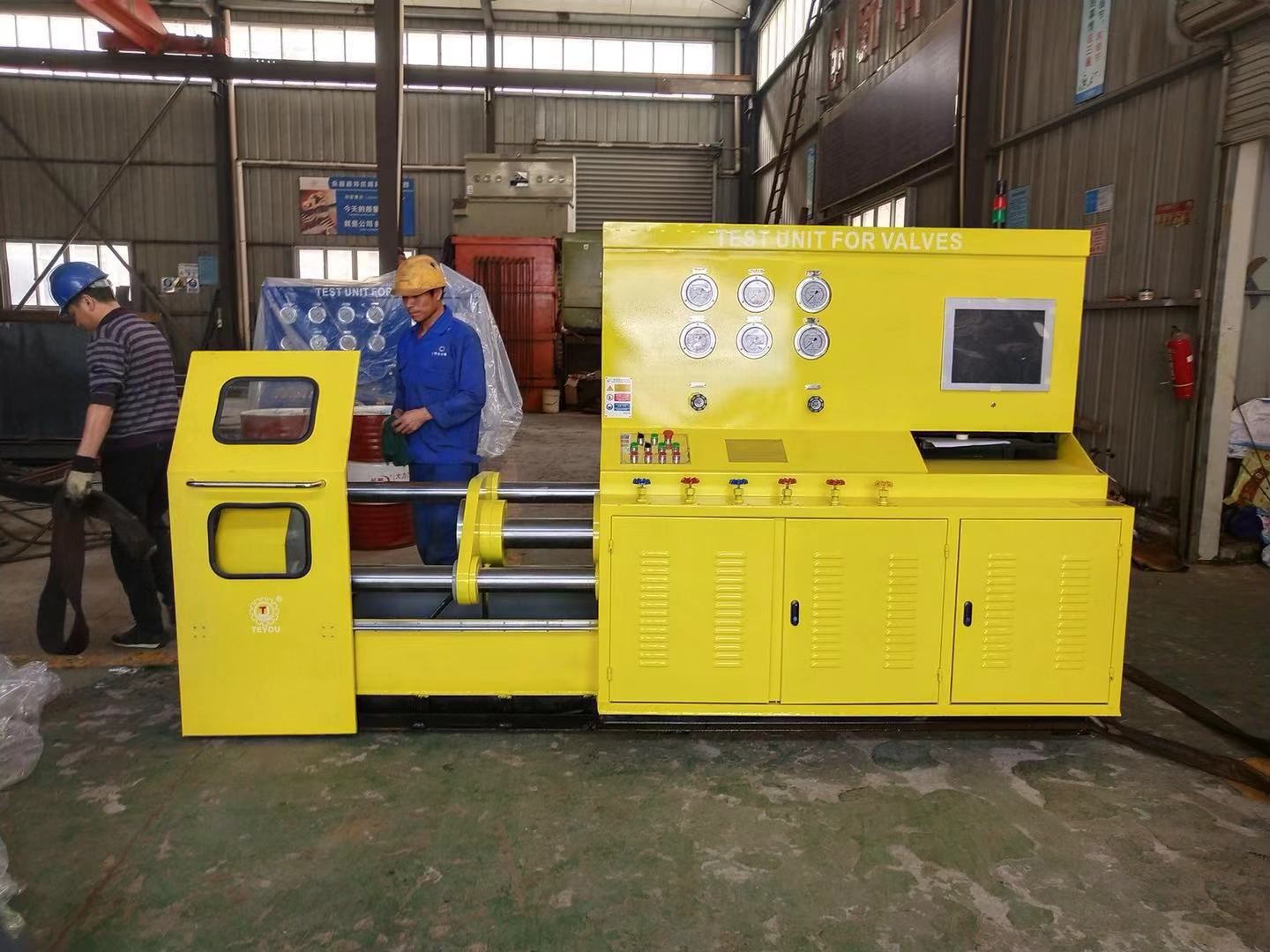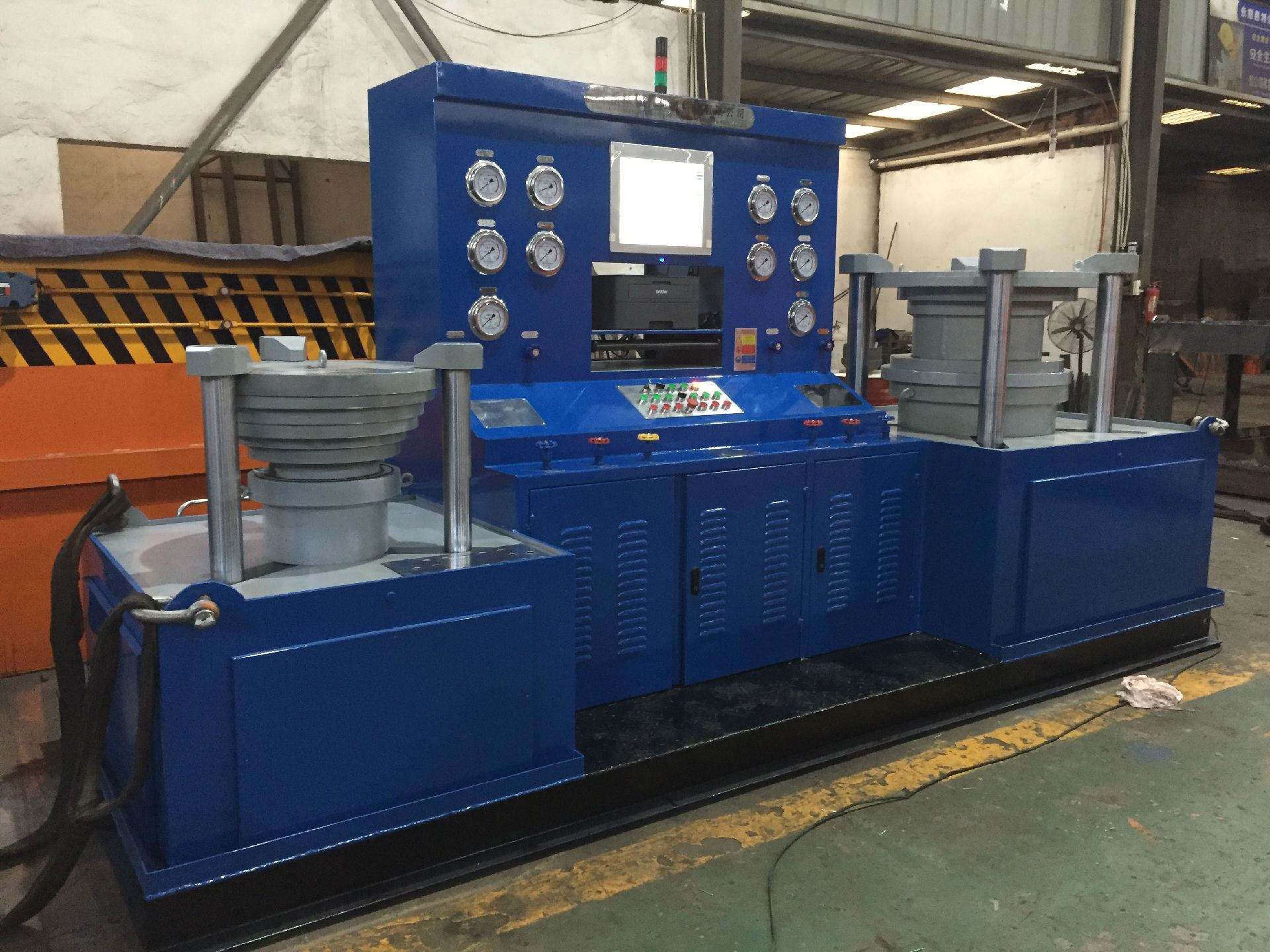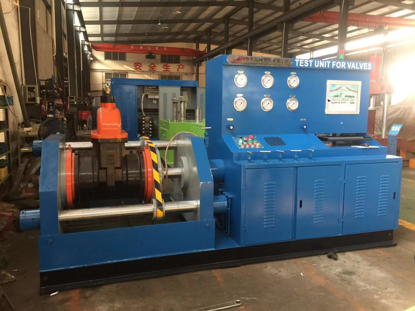 工作過程:根據(jù)閥門的公稱通徑和壓力調(diào)整油缸壓緊壓力——壓緊工件——打開低水泵快速注水——打開高壓水泵——保壓計時——卸壓、復位。