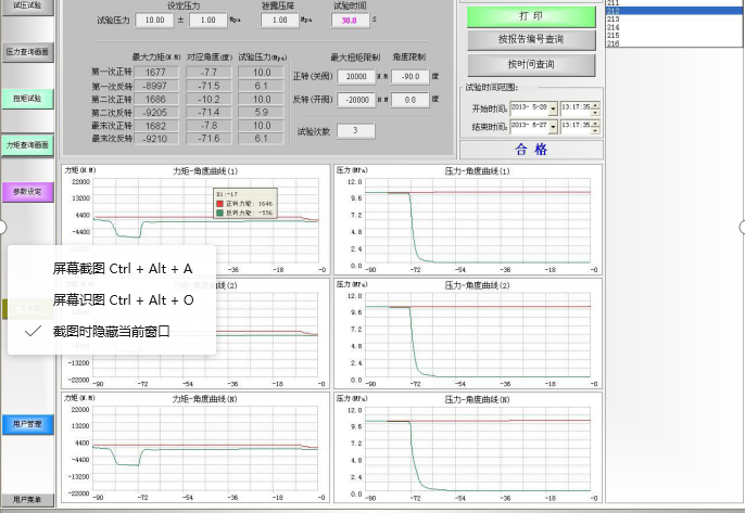 4. 該測(cè)試裝置應(yīng)能顯控閥門扭矩測(cè)試過(guò)程中任一開度位置的扭矩值,打印表格上應(yīng)有最大測(cè)試扭矩力,并能輸出打?。ㄩy門開度位置與扭矩值對(duì)應(yīng)曲線圖)。